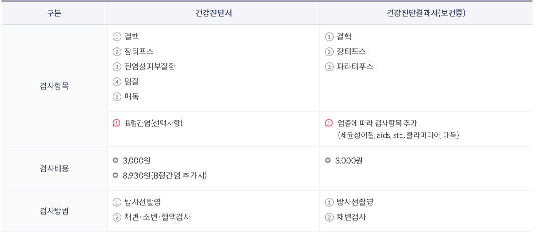 - 검진 후 결과 확인 및 보건증 수령