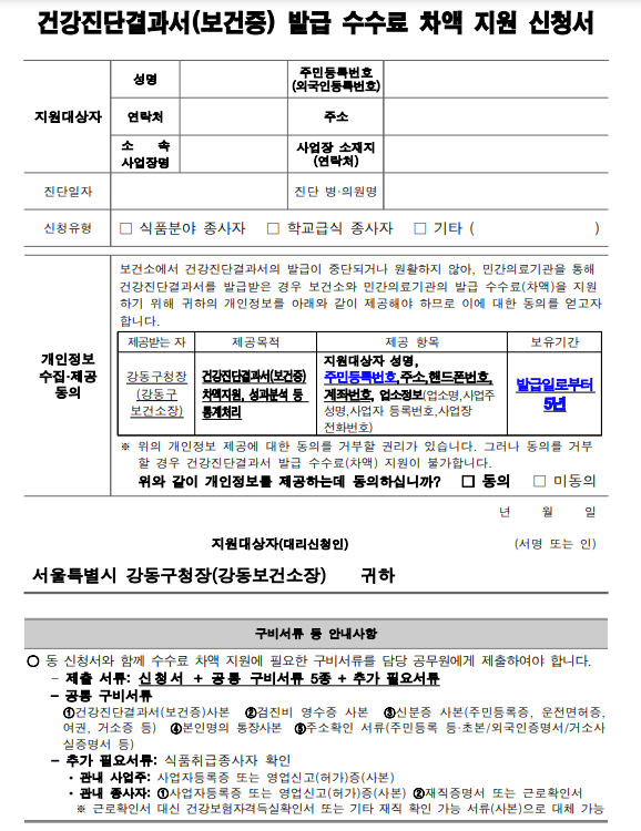 ✅ 보건증 신청서 및 검사 예시